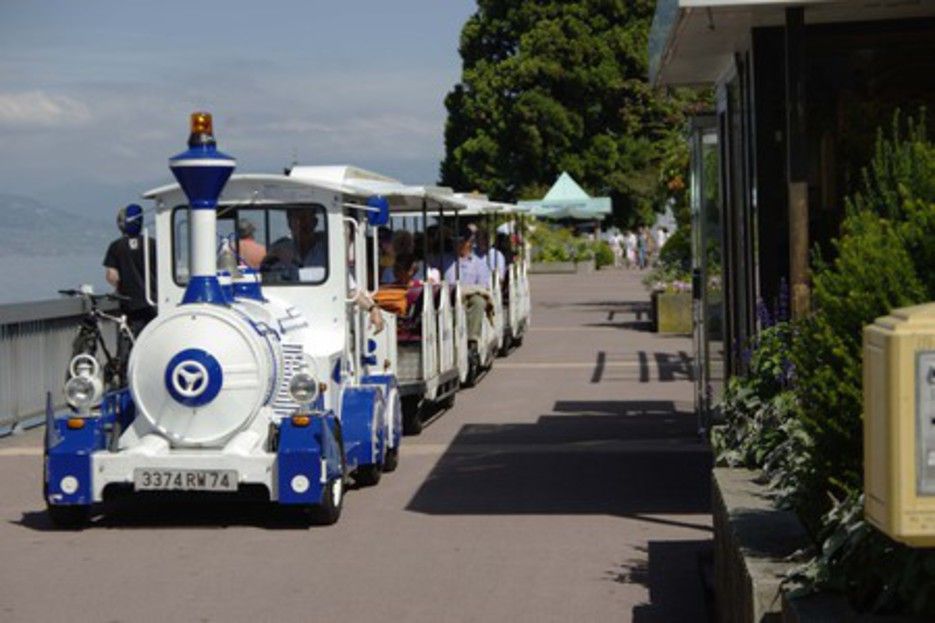 Belle terrasse ensoleillée, vue sur le Lac Léman, au cœur des jardins de la ville, pour profiter de la saison estivale.
